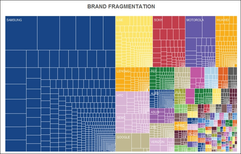 Отмечается, что Android-инфраструктура страдает от сильной дефрагментации. В настоящее время на рынке представлено приблизительно 19 тысяч различных мобильных устройств на базе Android. Для сравнения: в прошлом году данный показатель равнялся 12 тысячам.