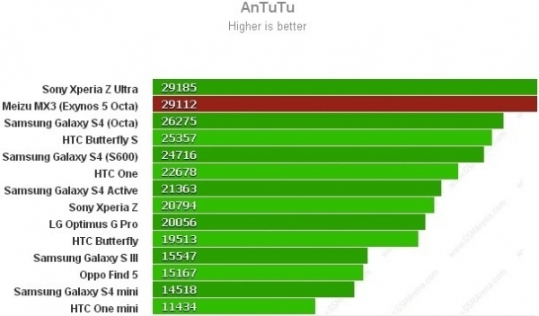 набрал 29112 очков и опередил Samsung Galaxy S4 I9500 с точно таким же