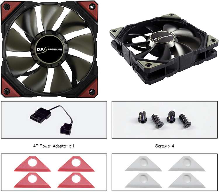 Но сначала немного о его характеристиках. Новинка имеет габариты 120 × 25 миллиметров и характеризуется ориентированностью на низкий уровень шума вкупе с высоким статическим давлением. В первом случае этому помогают эластичные прокладки в местах крепления к корпусу или радиатору (в комплект входят сменные прокладки красного цвета), а во втором — характерная форма крыльчатки с широкими, «загребающими» воздух лопастями и «не выпускающими» его обратно. Чем-то похоже на Cooler Master FP Silencio.