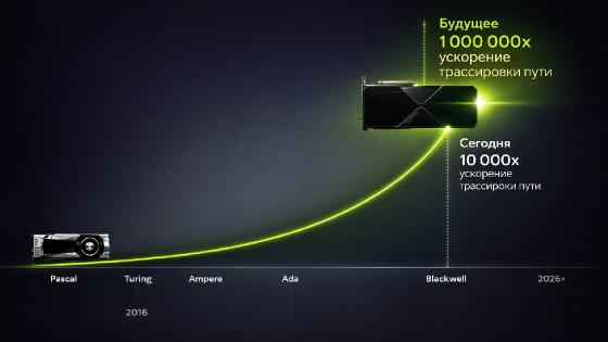 Компания NVIDIA заявила, что будущие поколения игровых видеокарт смогут обеспечить прирост производительности в трассировке пути до 1 000 000 раз по сравнению с архитектурой Pascal (серия GTX 10). Такой скачок станет возможным благодаря развитию алгоритмов рендеринга и искусственного интеллекта.