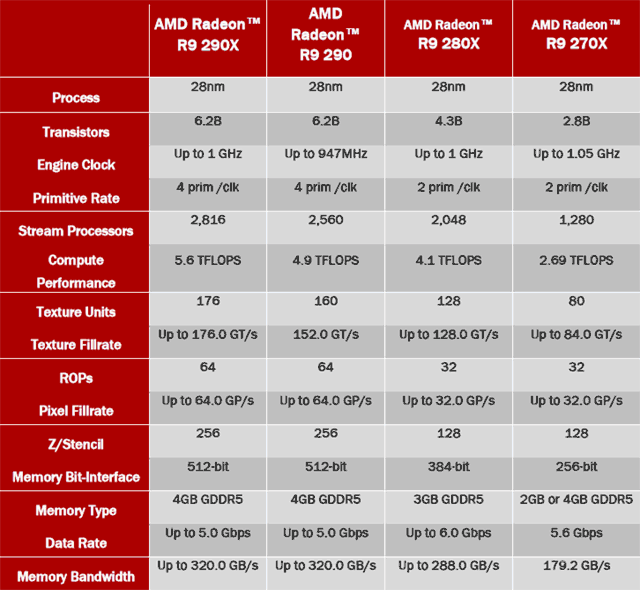 Остальные характеристики R9 290 остались неизменны в сравнении с