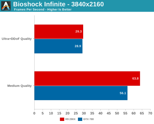 Сайт Anadtech в дополнение к этому приводит немного иные результаты тестов в Bioshock Infinite, выполненные с другими настройками качества.