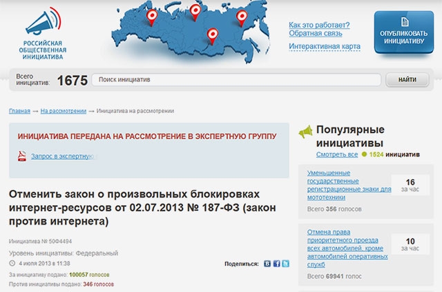 об отмене «антипиратского закона», которая к 10 августа собрала 100