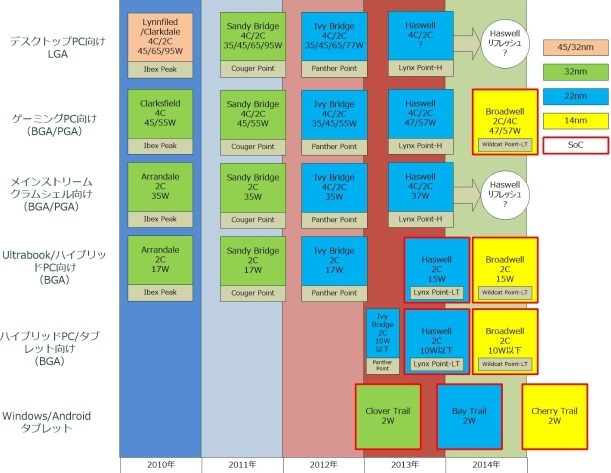 перспективных процессоров Broadwell запланирован лишь на вторую