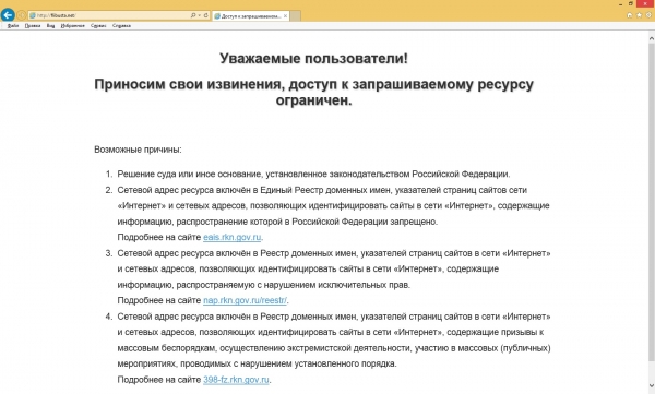 «Роскомнадзор» сообщил о блокировании бесплатной онлайн-библиотеки «Флибуста» — уже сейчас сайт недоступен. Основанием для блокировки стало решение Московского городского суда в деле по иску издательства «Эксмо». Последнее обвиняет ресурс в неправомерной публикации произведений известного американского писателя Рэя Брэдбери. На сайте, без согласования с правообладателями, были размещены романы «451 градус по Фаренгейту», «Вино из одуванчиков», «Марсианские хроники» и «Золотые яблоки солнца».