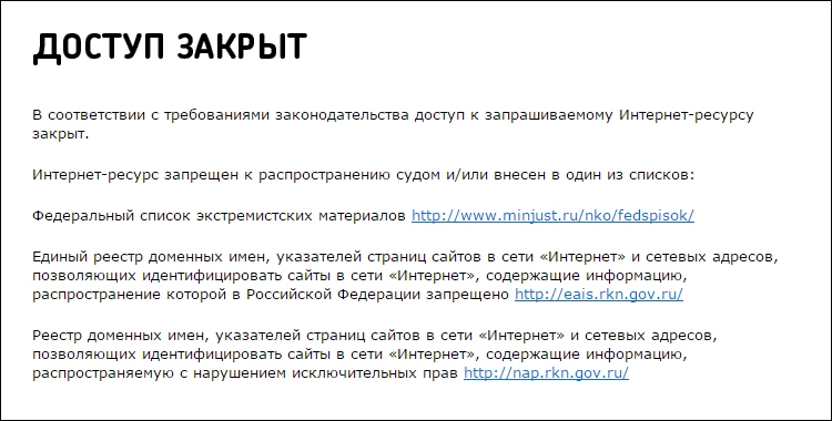 При попытке посещения PornHub отображается сообщение следующего содержания: «В соответствии с требованиями законодательства доступ к запрашиваемому интернет-ресурсу закрыт».