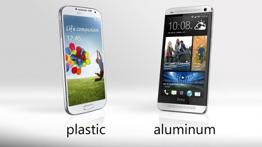 алюминиевый HTC One и сравните его с пластиковым Samsung Galaxy S4.
