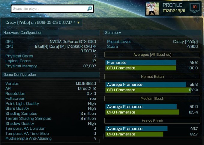 Судя по всему, кто-то не удержался и таки слил в сеть результаты тестирования новой видеокарты Nvidia — GTX 1080 с режимом DirectX 12 в игре Ashes of the Singularity. Позволяет примерно прикинуть то, на что можно рассчитывать от данной карты по крайней мере в реальных играх, а не синтетических тестах.
