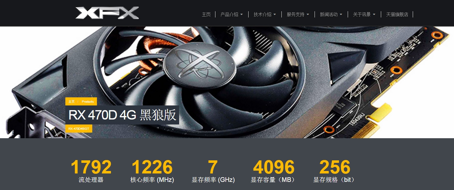 XFX RX 470D 4G 黑狼版 («Чёрный волк»)