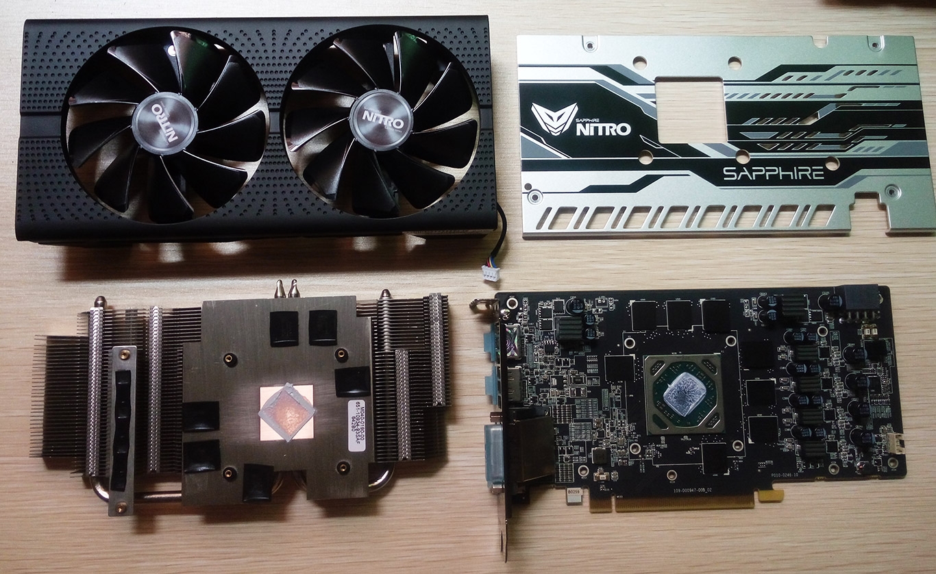 Подборка фотографий видеокарты Sapphire Radeon RX 470D Nitro оказалась самой подробной из тех, что были опубликованы на форуме Chiphell. Устройство оснащено двухслотовым кулером с парой 95-мм вентиляторов, таким же количеством U-образных тепловых трубок и медным основанием. Система питания выполнена по схеме «4 + 1 + 1» фаза. Для подсоединения 8-контактного кабеля PCI-E Power предусмотрен соответствующий разъём. Набор видеовыходов состоит из пяти портов: DVI, HDMI (2 шт.) и DisplayPort (2 шт.). Тыльная сторона платы накрыта усилительной пластиной.