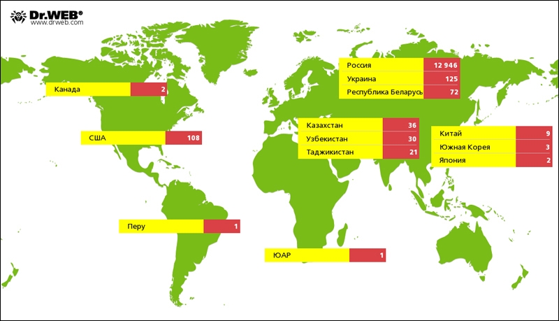 Android.Wormle.1.origin распространяется среди владельцев Android-устройств при помощи SMS-сообщений, содержащих ссылку на загрузку копии вредоносной программы. Такие послания рассылаются по всем телефонным номерам из книги контактов. На сегодняшний день зловред смог инфицировать более 14 000 смартфонов и планшетов, принадлежащих пользователям из более чем 20 стран. Наибольшее число инфицированных гаджетов — 12 946 (или 91,49%) — находится в России. Далее следуют устройства из Украины (0,88 %), США (0,76 %), Беларуси (0,51 %), Казахстана (0,25 %), Узбекистана (0,21 %), а также Таджикистана (0,15 %).