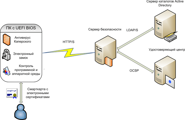 встроенными в UEFI BIOS рабочих станций, правами доступа к клиентским