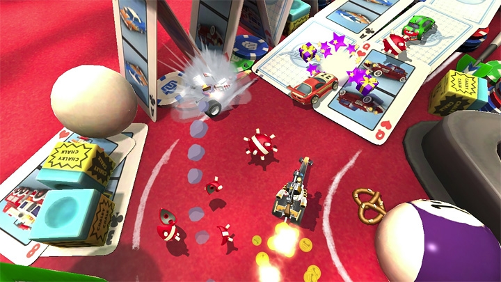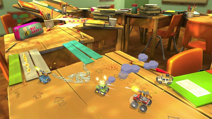 Новинка, получившая название Toybox Turbos, постарается воскресить дух аркадных ретро-игр. «Toybox Turbos ворвётся на рынок с многопользовательским режимом, который позволит веселиться вместе с друзьями и семьей, — говорят авторы. — Игра представит вам кухонные и бильярдные столы, парты и стенды в научных лабораториях — всё это будет превращено в миниатюрные настольные гоночные треки!»