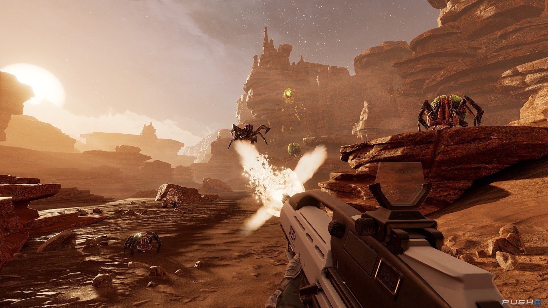 Напоследок Sony позволила испытать в деле шлем виртуальной реальности PlayStation VR с контроллером-ружьем PS VR Aim Controller в грядущей игре Farpoint. Это довольно прямолинейный и простой шутер, посвященный истреблению насекомовидных монстров в инопланетом мире. Именно поддержка ружья для PS4 выделяет эту игру: вам придется целиться и стрелять, как если бы в руках было настоящее оружие. А вот передвигается персонаж с помощью аналогового джойстика, что немного дезориентирует и портит иллюзию погружения. Игра не вызывает головокружения благодаря высокой частоте смены кадров: мощности PS4 Pro более чем достаточно для несложной графики Farpoint.