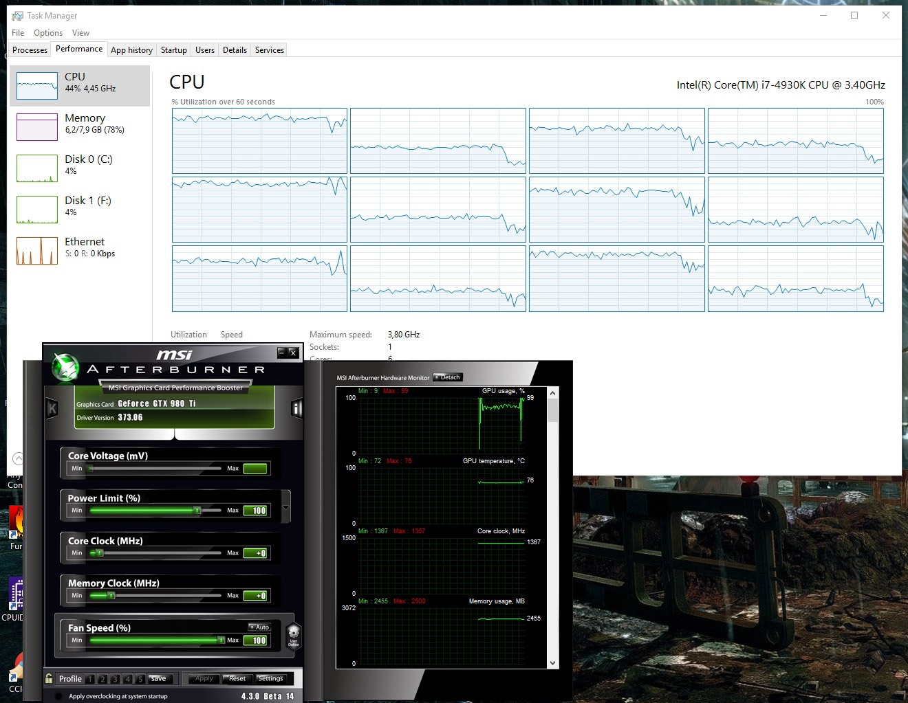 К видеокартам игра особенно неравнодушна, будь то ускорители на чипах AMD или NVIDIA. Согласно Guru3D, при разрешении 1920 × 1080 точек и высоком качестве графики планку 60 к/с способна преодолеть только модель TITAN X, которая базируется на топовом GPU Pascal GP102-400. В то же время для средних 30 к/с достаточно и GeForce GTX 780 Ti или Radeon R9 380X.