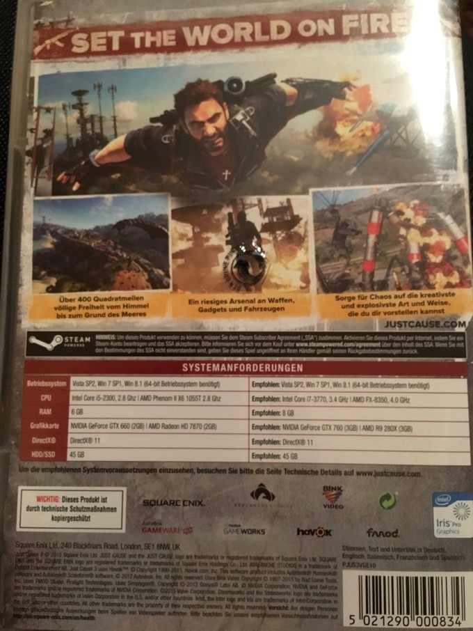 И хотя до официального релиза Just Cause 3 остается ровно неделя, Avalanche Studios почему-то так и не решаются обнародовать системные требования. Тем не менее, одному из пользователей Reddit все же удалось заполучить коробку с PC-версией игры, где указаны требования. Стоит отметить, что игра будет использовать возможности Nvidia GameWorks.