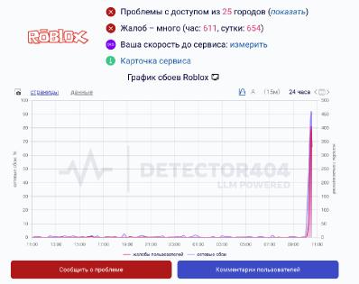 На текущий момент на работоспособность Roblox пожаловались более 611 раз. Пока разработчики официально не объяснили, с чем связаны проблемы.