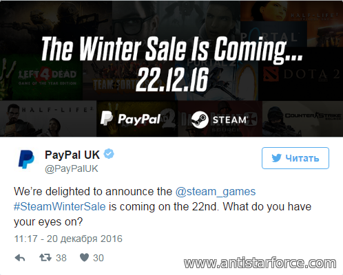 Стартует эта распродажа уже в этот четверг, 22 декабря, о чём сообщили сотрудники платёжной системы PayPal. В прошлом PayPal уже неоднократно правильно называл даты старта, поэтому причин для недоверия нет. Вообще, информация о дате начала распродажи утекла ещё в начале месяца, но приятно наконец-то получить подтверждение.